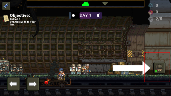 4、如图所示,左下叫按键控制角色移动,右边这个按键增加后勤士兵;
