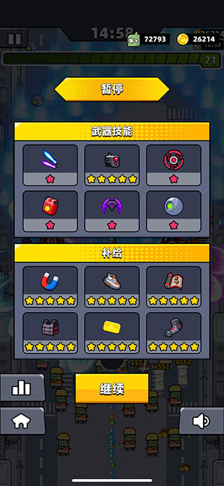 6、玩家通过跟敌人战斗提升自我,生存进化,满屏僵尸,消灭它们,得到丰厚奖励