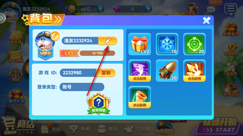 功能:召唤一条金边鱼,击杀后可获得高额奖金币。