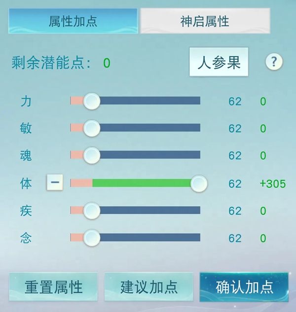 加点&特效:人物加点可以开两个方案,一个全体,一个全力,灵兽加点全体。特效上个人推荐15御法+15坚守,剩余点数则选不灭或化煞。