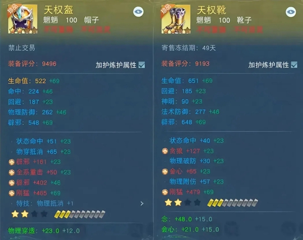 右边宝石以防御为主,在坚持高血量的基础上继续多方位提升防御。有条件的少侠金色宝石可以选择双高级知彼+御心,紫色宝石可以继续巩固双防,选择物防+法防,蓝色则都是加厚血条的生命+体力。