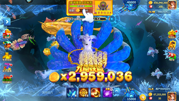 5、游戏里的捕到大鱼的概率非常的高,而且金币也是非常的多,基本上不会破产