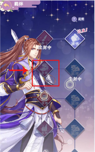 2、选择之后,可以进行召见增加关系,再进行点击羁绊进行查看。