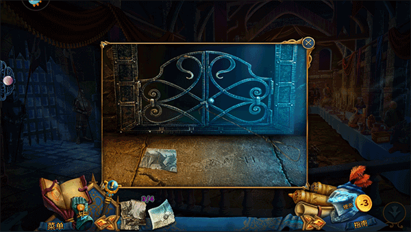 用电子门卡进入档案室,拾取警卫遗物中的警徽。