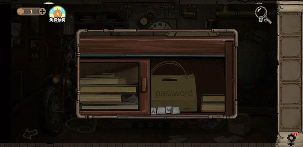 字母从左到右排列输入WUMA左边抽屉打开取出钥匙