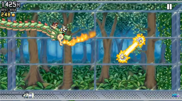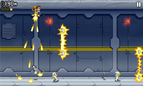 《疯狂喷气机最新版安卓版》是一款跑酷类游戏,在2D关卡中进行,角色配备了喷气背包。您可以完全舒适地翱翔,高效地收集相应的物品。同时,躲避敌人的攻击也是走远路不可忽视的必要因素。毫无疑问,这是一款你不能错过的游戏。