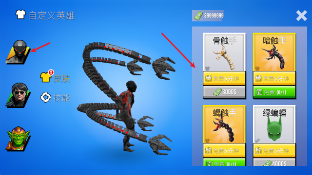 4、能力成长模式:玩家可以通过多种方式来增加自己的反派值,从而提升反派等级,解锁更多的强力技能。例如,消灭平民、破坏建筑或击杀前来阻止自己的英雄等行为都可以提升反派值。此外,玩家还可以升级触手的长度、力量、耐热性,或是附加特殊功能,形成持续发展的角色成长体系。