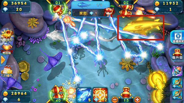 攻打大鱼能获得更多金币和钻石奖励,但同时也需要消耗更多的金钻,如大白鲨、大金鲨、大海怪等。还要注意的是,如果大鱼还没游到你面前,你使劲拼命进攻也是捕捉不到的,还浪费金币。