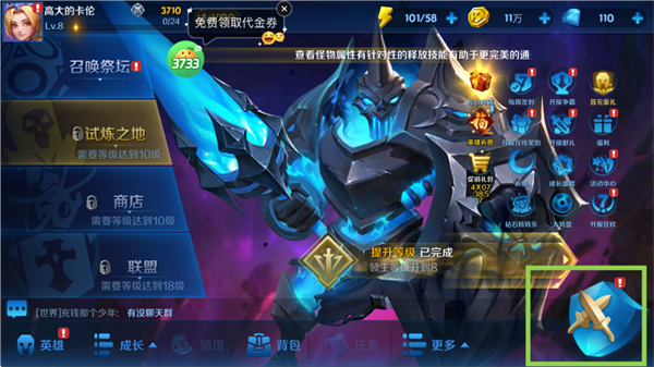 1、召唤祭坛是游戏的核心玩法之一,玩家可以通过召唤来获得英雄