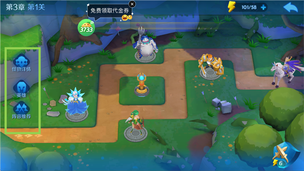 4、点击怪物详情可查看当前关卡的怪物,点击阵容推荐可查看其他玩家的通关阵容。
