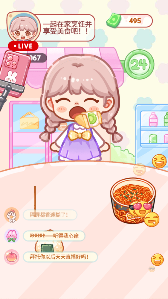 5、随后就能够开启吃播表演了。