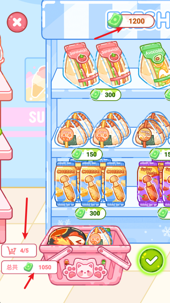 3、每一次最多可以购买五件商品,并且要注意自己的余额哦。