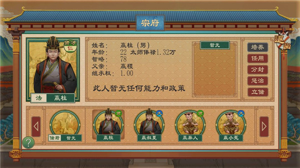 可任命朝臣,朝臣根据自身智略产出贤能值,贤能值在处理都城内政,治理都邑,对外征战等事件中皆有用处。