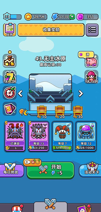 蝙蝠主要输出,抽到3个蝙蝠后比较厉害,范围攻击 ,冰女必备,减速冰冻,搭配毒液晕眩敌人,小黄鸭,远程攻击,前期能抽到分裂蛋,必选清小怪,这套是非常厉害的,可以直接通关。