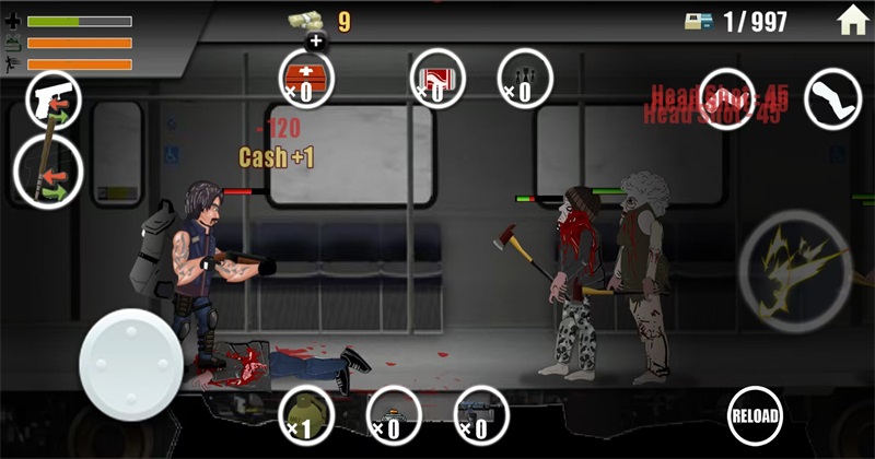 5、用腿可以攻击地面的丧尸给于致命一击。