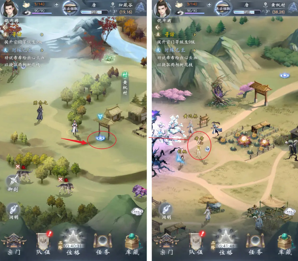 1、首先,我们前往归藏谷,通过传送入口到黄枫村,找到希希