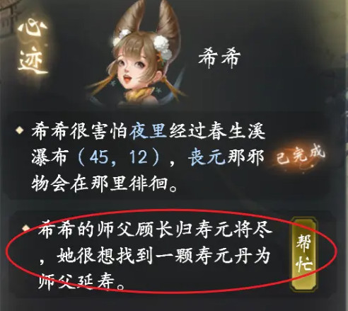 战胜丧元后,完成“希希的心迹”任务,