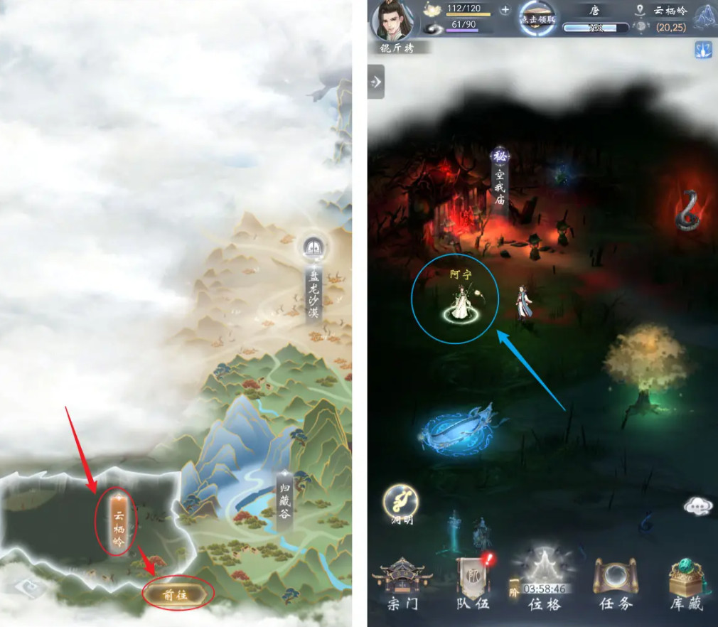 4、移动至归藏谷(46,12)处,可以触发对话,击败丧元。