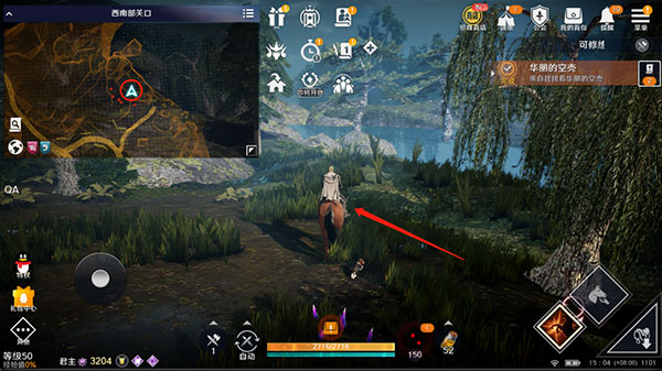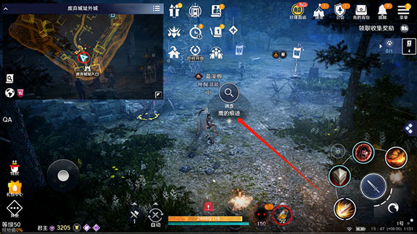 我们需要前往【废弃城址内城】寻找小鹰的踪迹。第一个痕迹很难注意到,因为它藏在boss入口的左后方,再加上边上的野怪会自动攻击咱们,所以很容易就忽略掉。