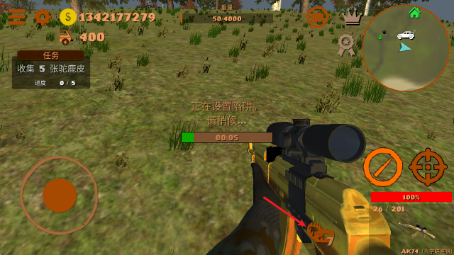 5、发现目标后,点击右侧的瞄准镜即可瞄准,瞄准目标后即可射击。