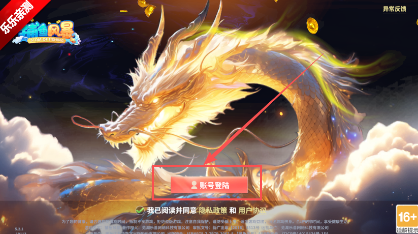 1、下载打开捕鱼风暴狂暴版游戏客户端,点击“账号登陆”。