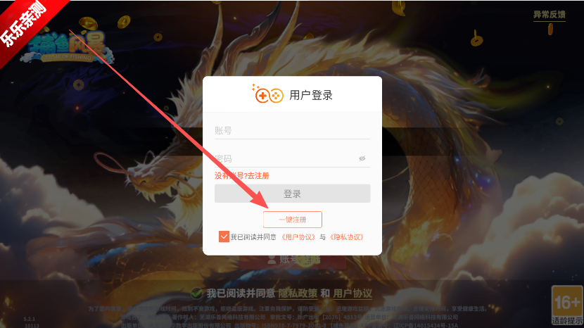 2、在用户登录界面点击“一键注册”,免去其他繁琐步骤。