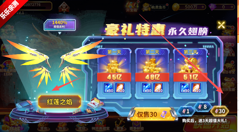 激活即可获得丰厚鱼币资源与永久限定翅膀,助您快速积累战力、华丽开局,轻松畅享捕鱼乐趣。