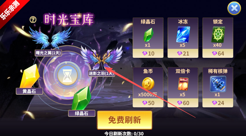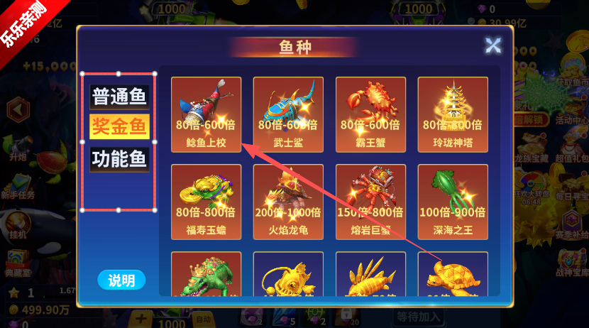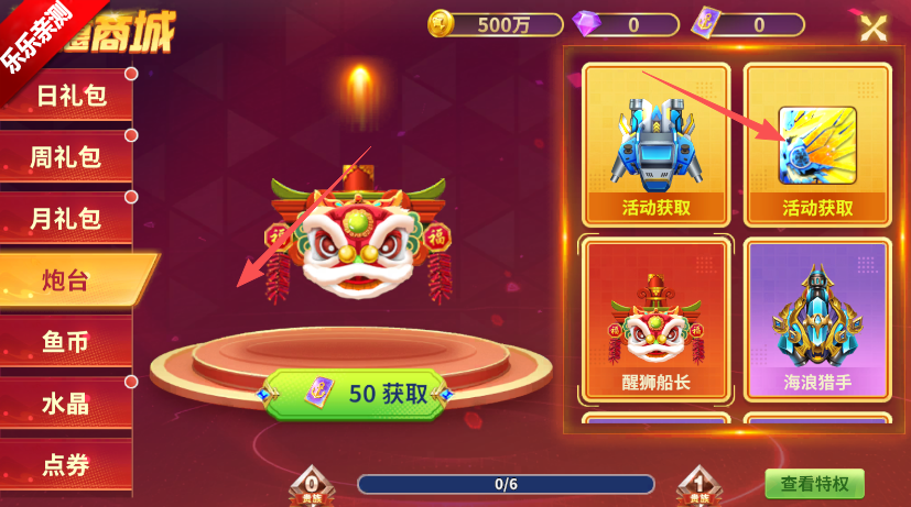 5、在游戏各色渔场中捕获特定鱼种时,将有几率直接掉落珍稀的炮台与翅膀碎片: