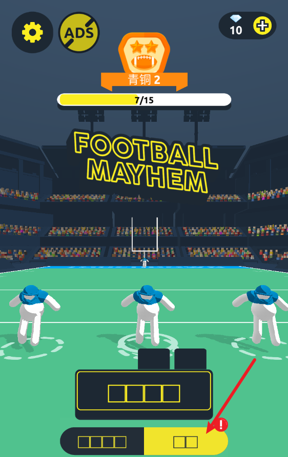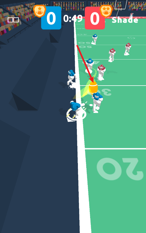 3、拿到橄榄球后,就需要向着对方的球门跑去,放到球门之后即可获得分数。