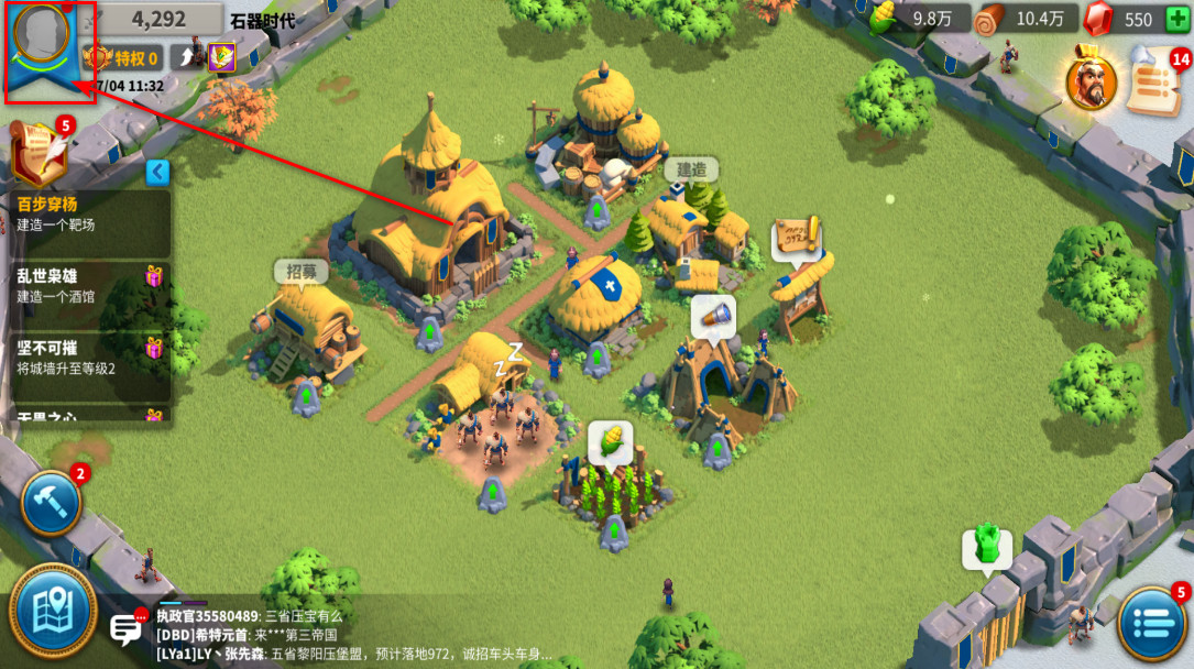 ④兵营Lv.7 1h32m 粮9.8K、木12.8K、石5.4K