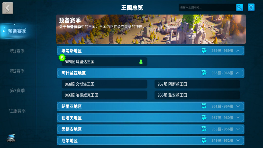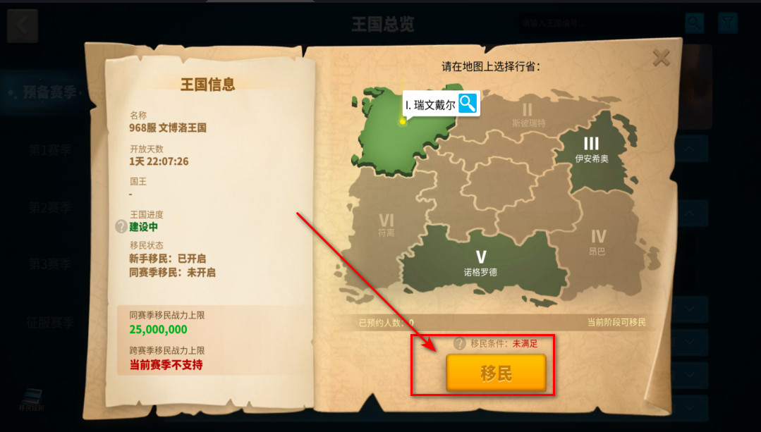 当前王国与目标王国处于相同赛季的情况下,执政官可以进行同赛季移民。跨赛季移民