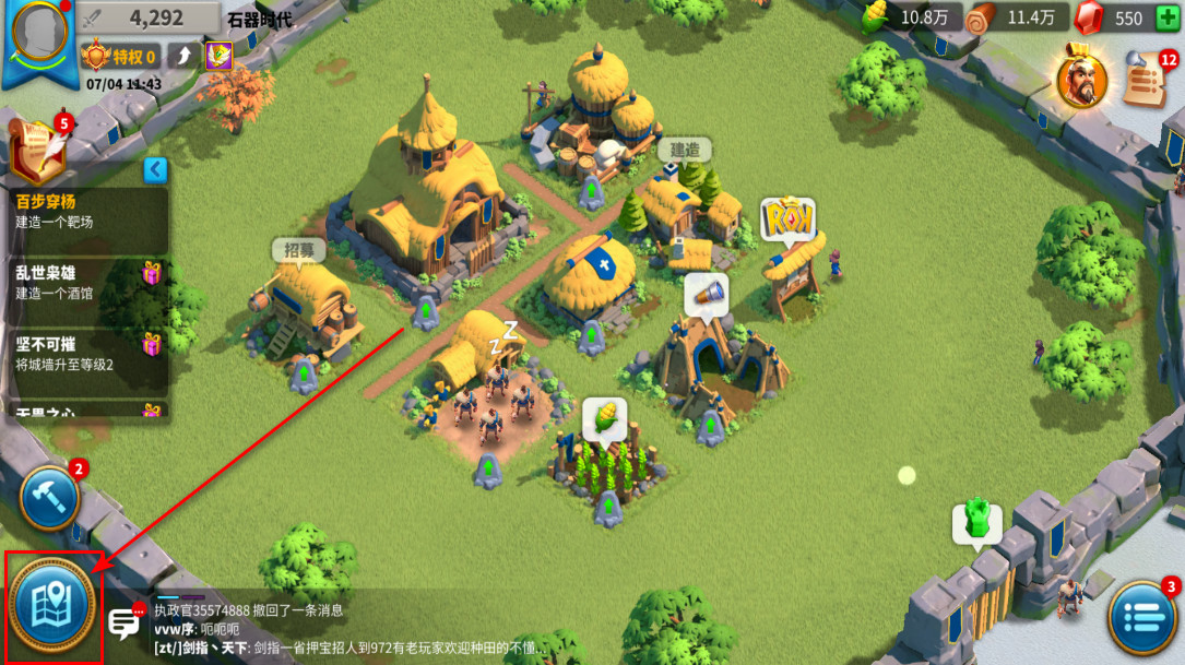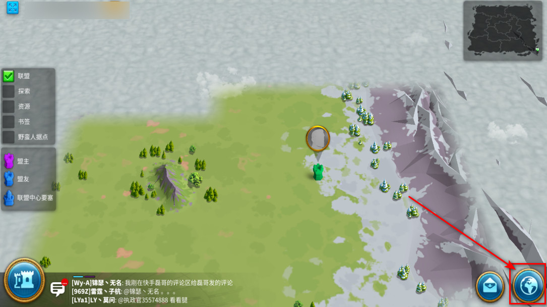 1、在进入游戏后,首先我们点击左下角的地图图标。