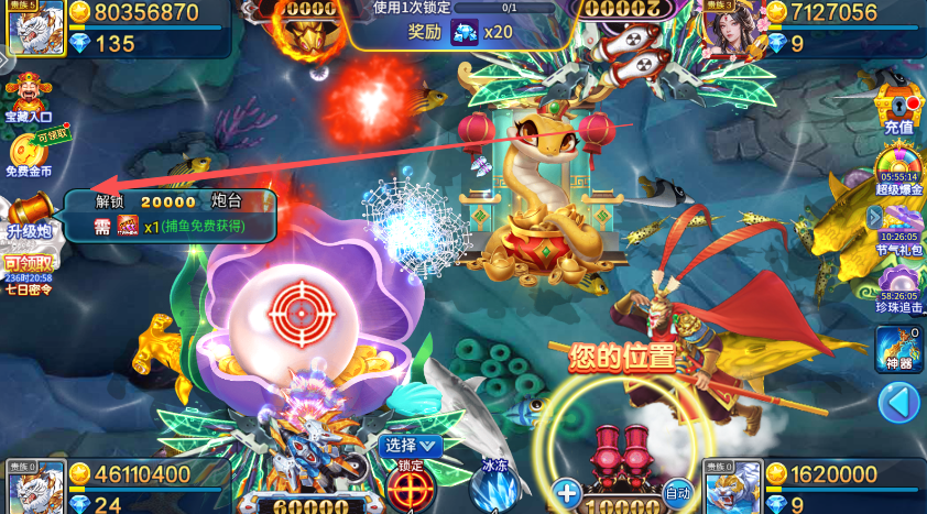 6、快速上分技巧优先攻击高倍率鱼:如黄金大鱼(随机倍率)、美人鱼(海量道具),收益远高于普通鱼类。
