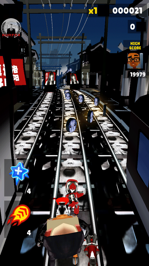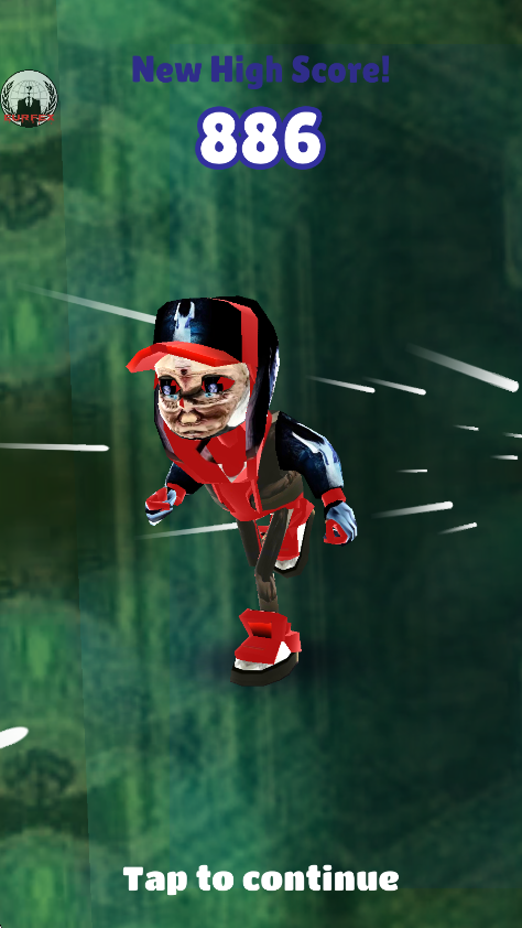 2、双击屏幕可以使用道具滑板,它可以帮助你提高得分,并且撞击还会为你清除障碍,但是滑板会消失。