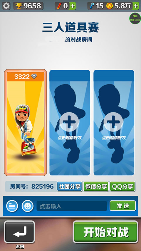 4、最后邀请好友或者社团成员,人满后即可【开始对战】了。