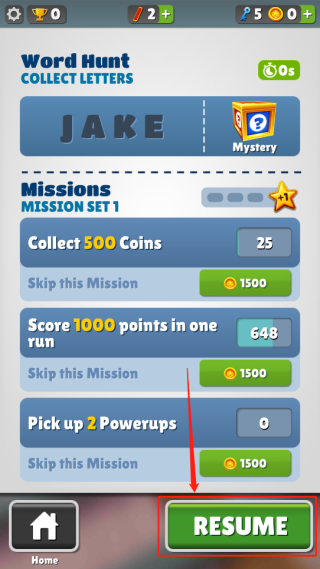 5、点击“RESUME”可恢复游戏