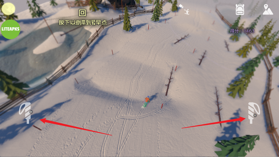 3、结合旋转、翻转、竞技、抓取、盒子、轨道和转换,创造令人印象深刻的技巧组合。掌握高级动作,如压鼻/压尾或用滑雪板轻敲树木,以获得史诗般的乘数!
