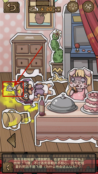 9、凶手处理血迹是使用场景二上方的鱼缸。