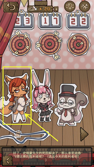 5、根据场景一上面的分数来选择,选择拿剪刀的狐利。