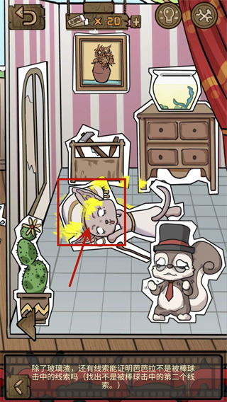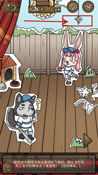 1、这相当于一个教学关卡教你怎么玩,首先第一个问题就是点击狐狸身后的剪刀。