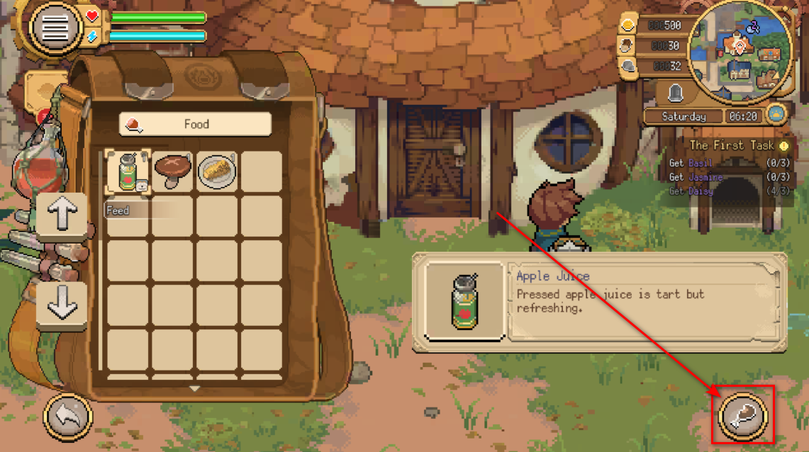 5.选择食物后,点击右下角的鸡腿。