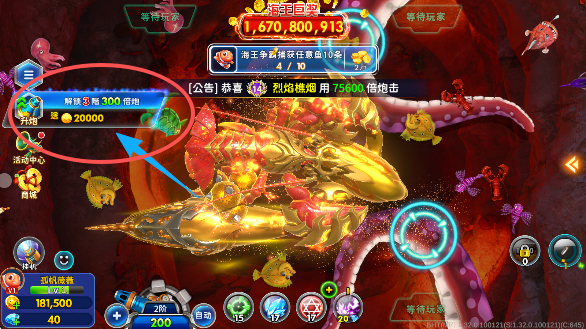 使用技能触发武器觉醒,劲爆十足,火力全开,横扫千鱼。