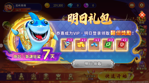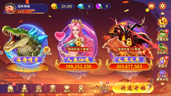 1、需要用户来到捕鱼开始的页面