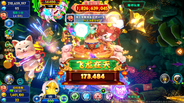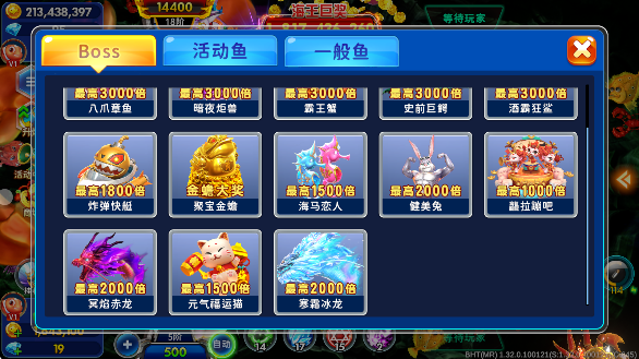 3、 更多体验:凤凰BOSS、聚宝盆、贝壳珍珠、幸运金牛等让你捕鱼惊喜不断。