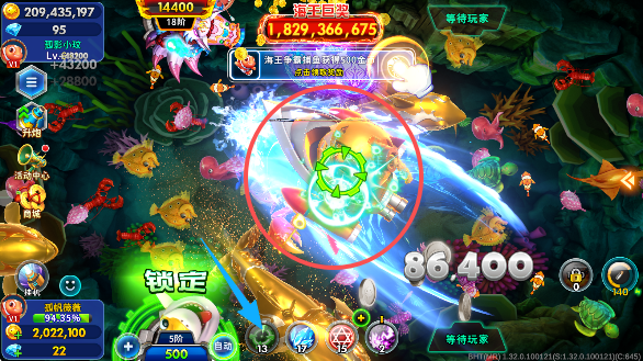 1、第一个道具,自动追踪,可以帮助玩家追踪一个最想打掉的鱼类