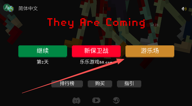 1、暗夜之战标题菜单页面,点击游乐场模式。