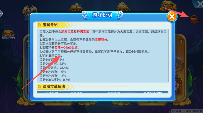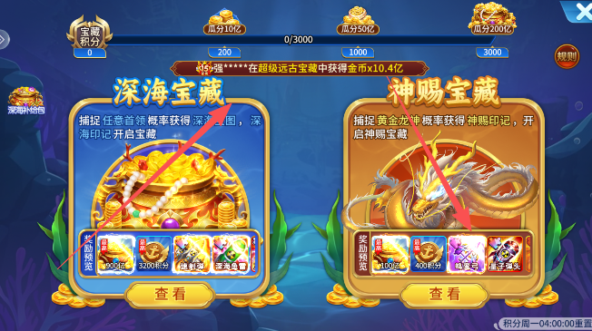 2、点击查看可以获悉最新赚钱的方法,比如在深海宝藏和神赐宝藏中分别就设置有不同的高额游戏金币奖励。