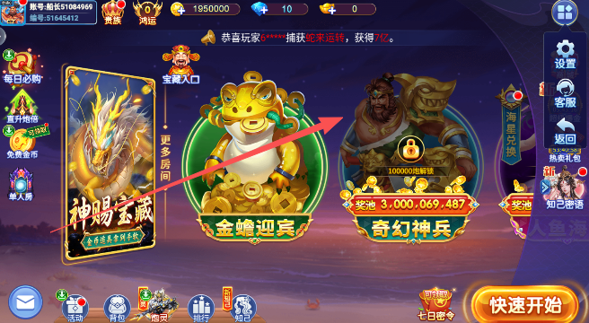 3、抽奖系统完善:包含渔王抽奖、转盘爆金等多重抽奖机制,奖励丰厚。