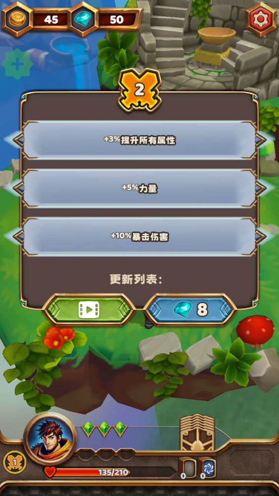 3、收集传奇装备,寻找专属卡片,获得最佳增强物品来升级你的英雄,并利用他的无敌力量获胜!