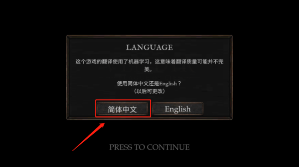 1、玩家打开维达谎言的瘟疫游戏,首先选择游戏内字体为简体中文,然后点击开始;